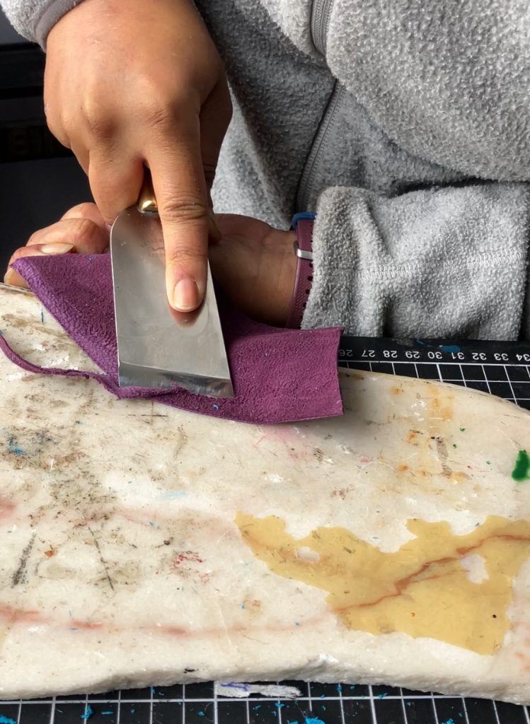 - amincir l’épaisseur des différentes pièces de cuir qui vont être assemblées pour former une tranche